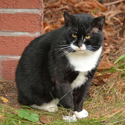 Samotnik - kot, którego karmiła sąsiadka. Sąsiadka się wyprowadziła, a kot został, no i wiadomo, kto go karmi . Nazywamy go Smutny, bo ma taką jakąś smutną tą swoją kocią twarz. Smutny nie daje się pogłaskać. Czasem znika na jakiś czas, potem wraca, czasem widać, że jest zraniony i wówczas nie możemy zrobić nic. Gdy widzimy, ze choruje dajemy mu z jedzeniem leki. Żal, że woli pozostać dziki, bo moglibyśmy mu z pewnością polepszyć jakość życia.